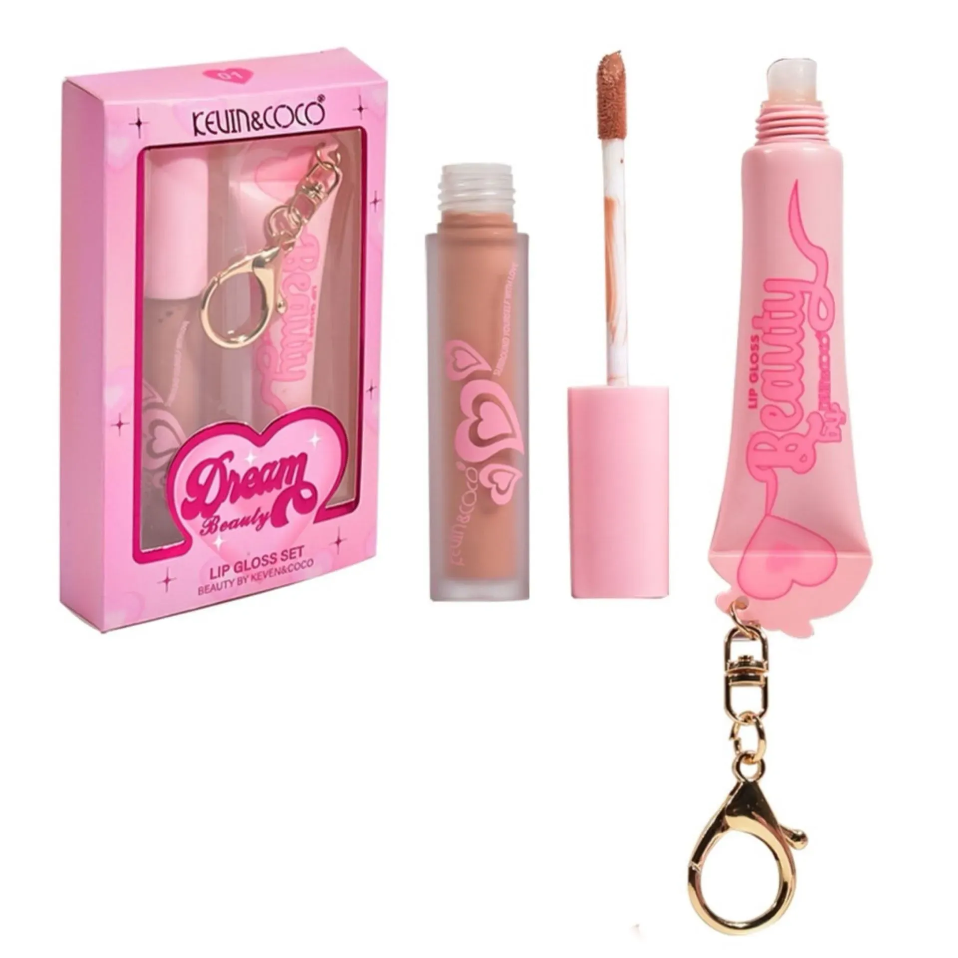LIP COMBO LABIAL+GLOSS TIPO LLAVERO KEVIN AND COCO 01